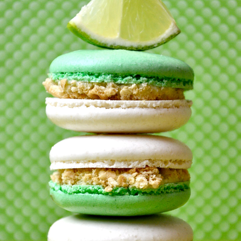 Meringue shells filled with key lime buttercream and dipped in graham crackers